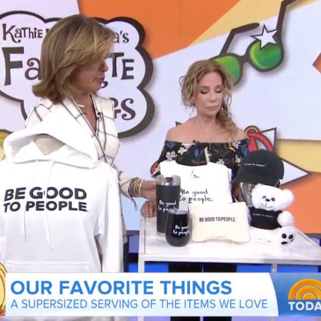Hoda Kotb describes in a heart-touching story (at 2:15) how she discovered the Be Good to People® kiosk at the Denver airport, and how our simple message was perfect for her that day as she encountered angels during her day of travel.